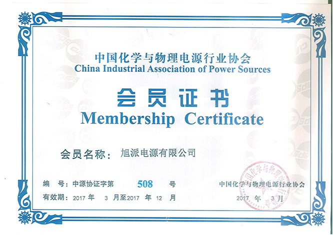 中國化學(xué)與物理電源行業(yè)協(xié)會(huì)會(huì)員證書